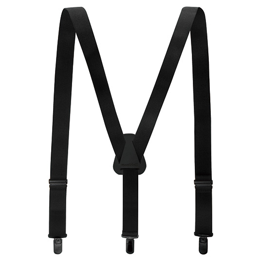 着脱が簡単なサスペンダーです。背面のパーツは薄くて柔らかい素材を使用し、背中に干渉しにくくなっています。金属パーツは使用していません。