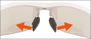 テンプルとフロントフレームに使用した超弾性ナイロン樹脂により、優れたフィット感を実現。また、2段階に調節できる熱可塑性エラストマー製ノーズパッドとイヤーパッドがズレを防止します。