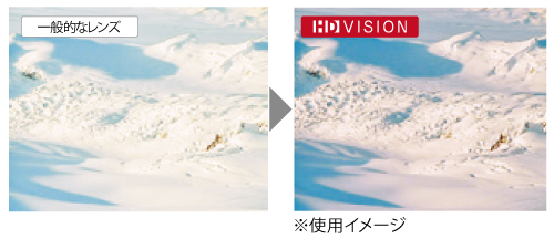 HD(ハイ・ディフィニション)VISIONレンズは、特定の波長の可視光を取り除くことでコントラストを際立たせ、鮮明で高精細な視界を実現するレンズです。特に曇天時にも、雪面の凹凸やうねりを視認しやすく、安全な滑走や歩行をサポートします。