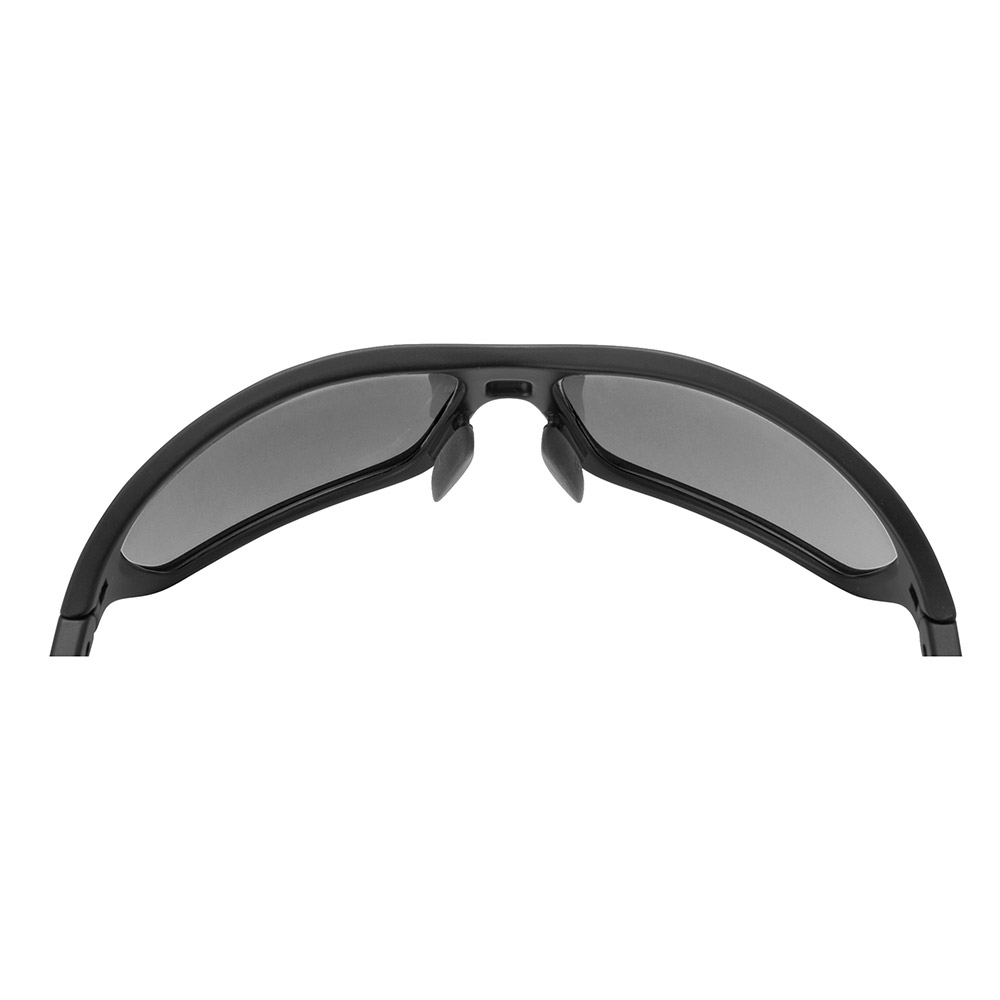 雪山快晴時の雪面や氷の乱反射をカットするPL(偏光)レンズを搭載したサングラス。レンズの内面側には曇り止め加工を施しています。フレームは顔に合わせて3段階の角度調節が可能です。