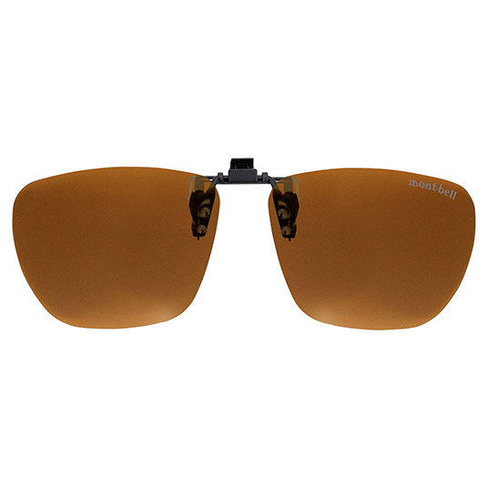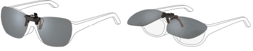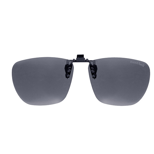 お持ちのメガネに取り付けて使用するスクエア形状のサングラスです。着脱が容易なクリップ式で、使用しないときは跳ね上げておくことができます。路面や雪面からの反射光を効果的にカットする偏光レンズを使用しています。