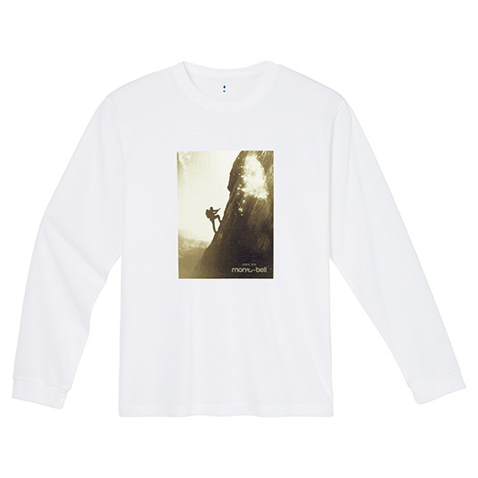 コットンのような自然な風合いと、優しい肌触りを持ちながらも、優れた速乾性と通気性を兼ね備えた快適素材。トレッキングだけでなく、日常でも快適な着用感です。アイガー北壁を登攀するモンベル創業者、辰野勇の写真を前面にあしらった、50周年を記念した限定品です。