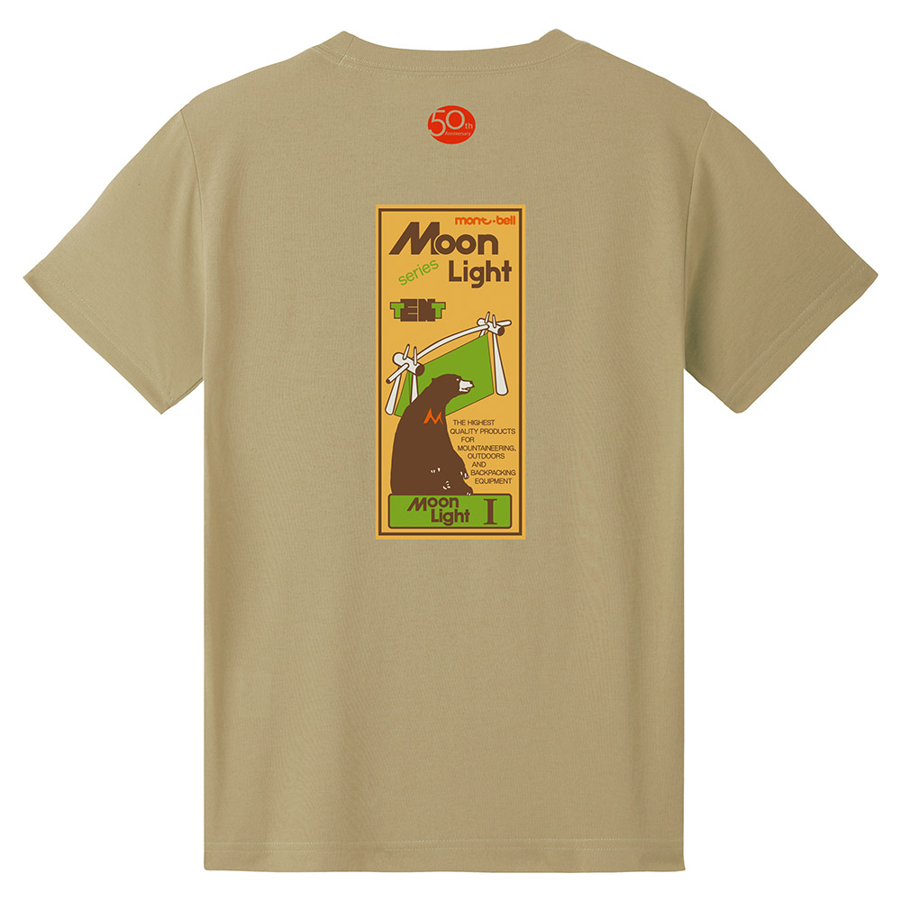 速乾性と通気性を備えながら、天然素材のような優しい肌触りのTシャツです。トレッキングだけでなく、日常でも快適に着用できます。1979年に開発されたムーンライトテントの発売当時のイラストを背面にあしらった、創業50周年を記念した限定品です。
