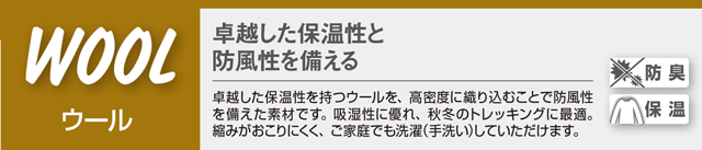 卓越した保温性を持つウールを高密度で織り込んだ厚手のシャツです。防風性と吸湿性を兼ね備え、トレッキングに最適です。