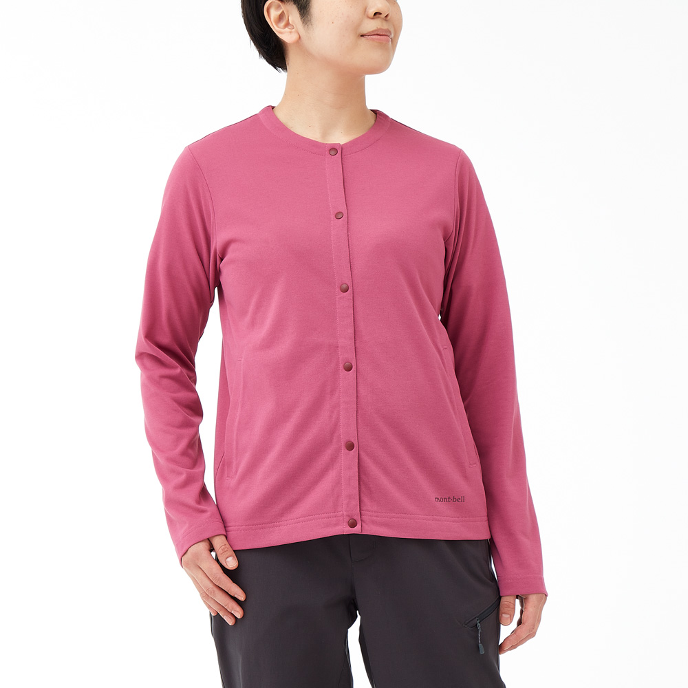 日焼け防止や温度調節に適した薄手のカーディガンです。吸水拡散性・通気性・消臭機能を備えたウイックロン®を使用しています。フロントは留めやすいスナップボタン仕様です。
