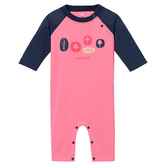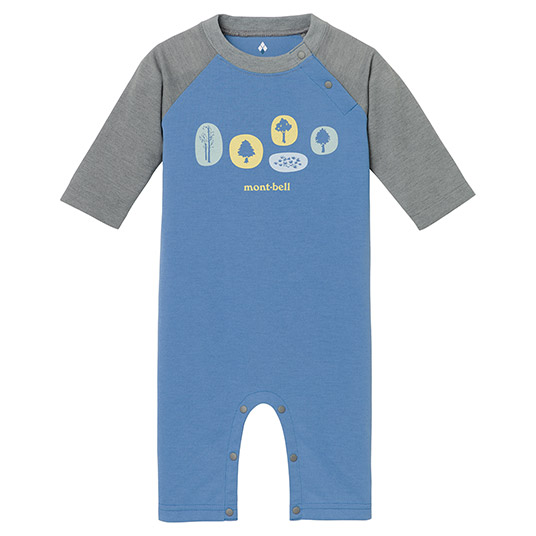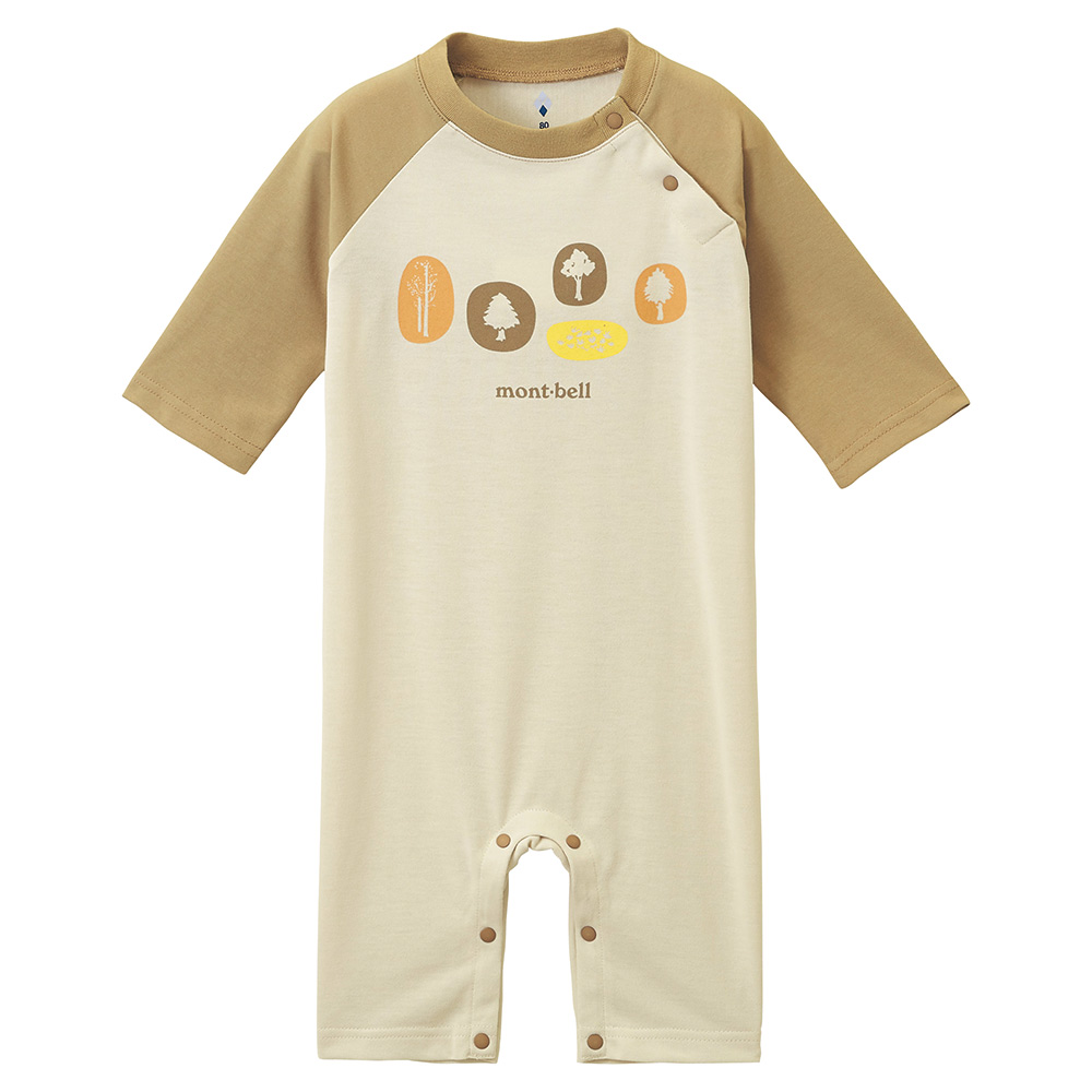 野外での遊び着や部屋着にも適したロンパースです。肌触りが優しく、高い吸水拡散性で肌をサラサラとした状態に保ち、消臭機能も備えています。内股はホックで全開するので、おむつ替えも簡単です。