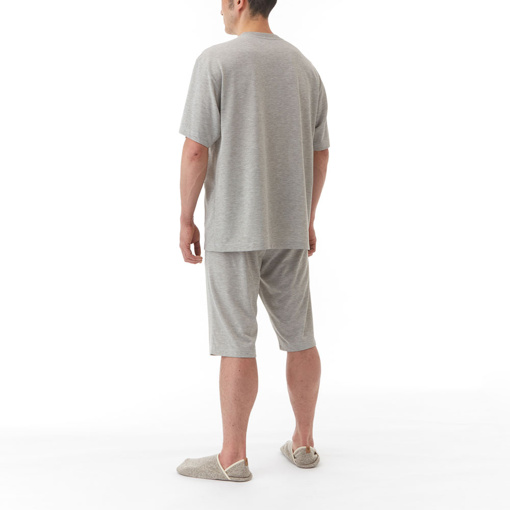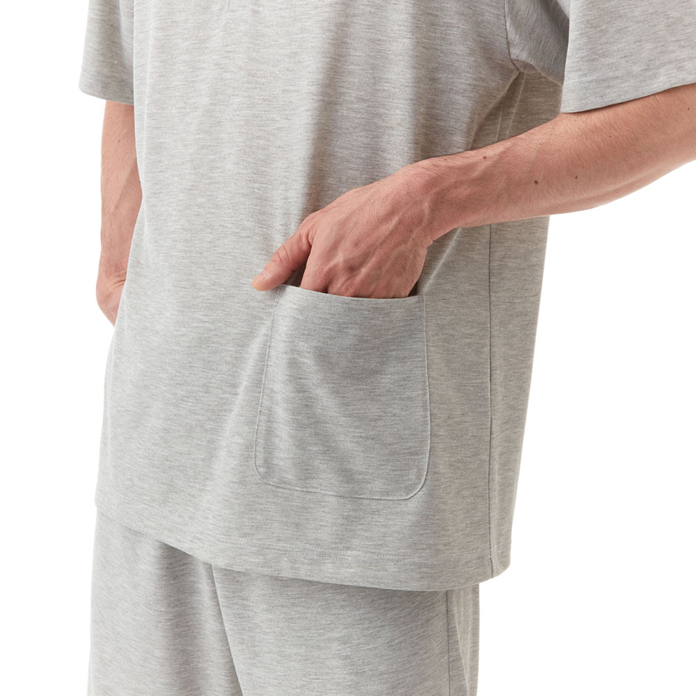 旅先でのリラックスウエアとして適した上下セットの半袖パジャマです。コットンのような優しい肌触りを持ちながらも、優れた吸水拡散性と通気性を備えたウイックロン®を使用しています。旅先で洗濯をしても乾きやすく、清潔な状態を保ちます。