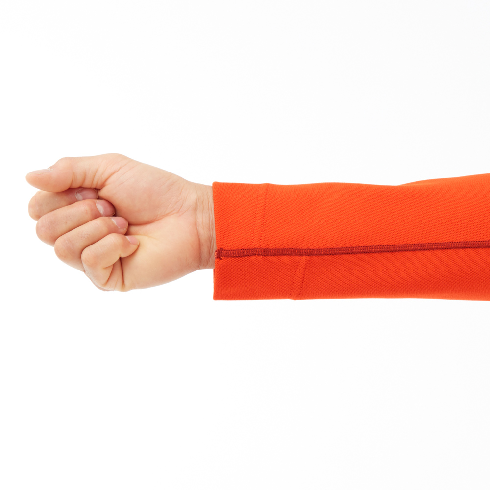 袖口の縫い目を斜め(スパイラル状)にすることでよく伸び、肌あたりの悪さや不快な締め付け感のない快適な着心地を実現しています。