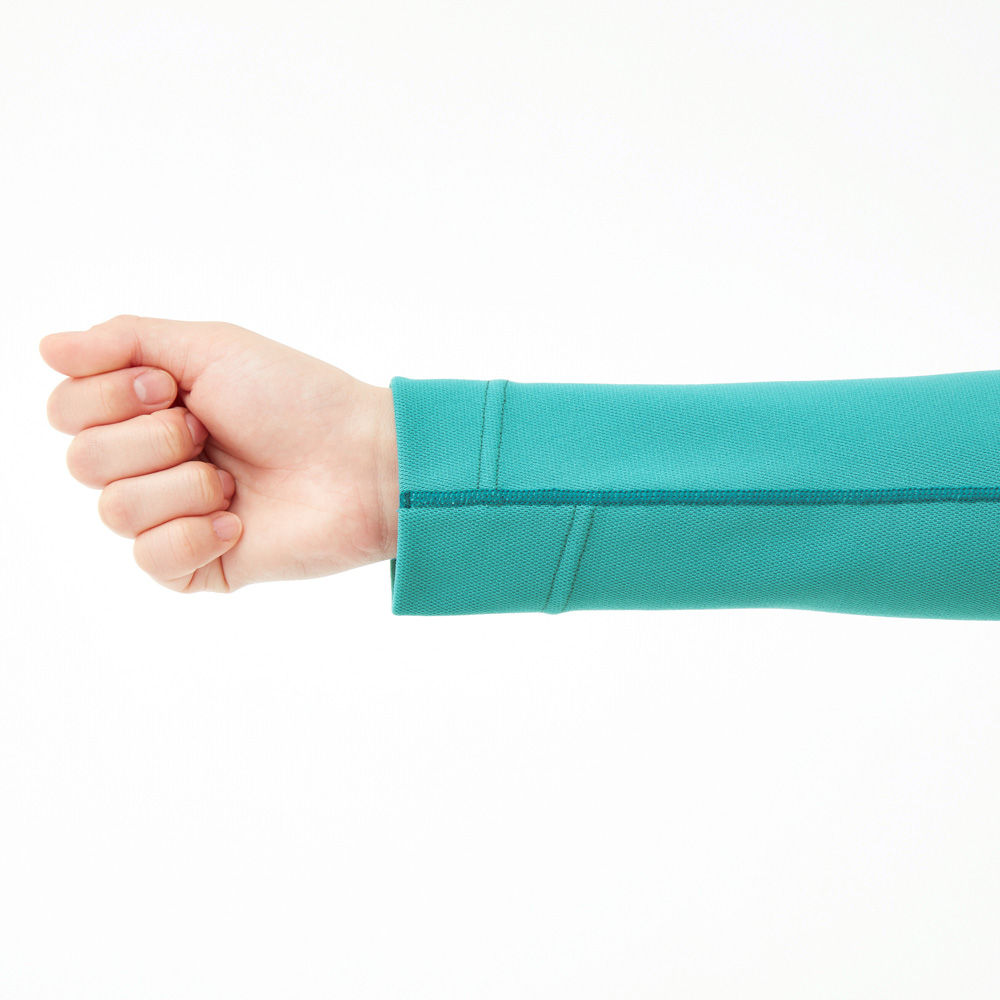 袖口の縫い目を斜め(スパイラル状)にすることでよく伸び、肌あたりの悪さや不快な締め付け感のない快適な着心地を実現しています。