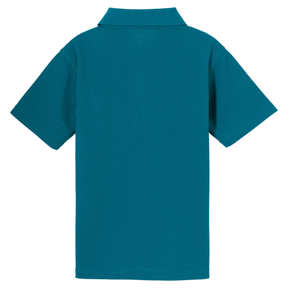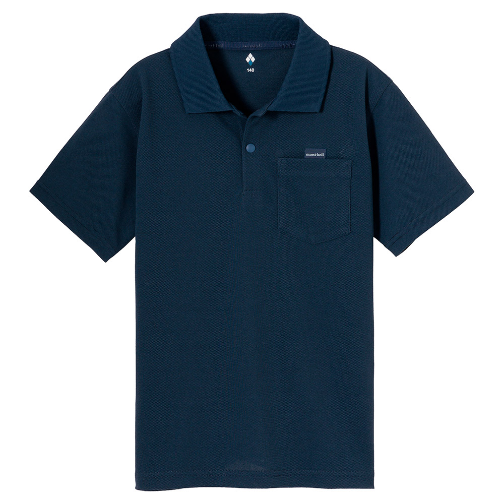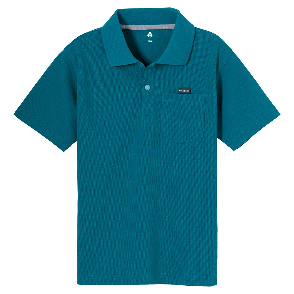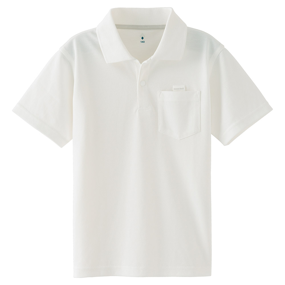 高機能素材ウイックロン®を鹿の子に編み込んだ生地を使用したポロシャツです。ハリ・コシがあり肌離れがよく、真夏でも快適な着心地です。襟元はホックボタンで子どもでも留めやすく、胸ポケットの上部には名札の安全ピンを通せるロゴテープを配しています。アウトドアから普段使いまで幅広く活躍します。