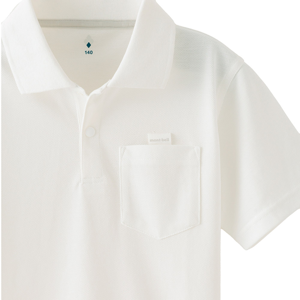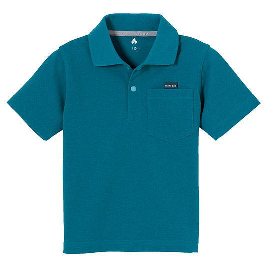 高機能素材ウイックロン®を鹿の子に編み込んだ生地を使用したポロシャツです。ハリ・コシがあり肌離れがよく、真夏でも快適な着心地です。襟元はホックボタンで子どもでも留めやすく、胸ポケットの上部には名札の安全ピンを通せるロゴテープを配しています。アウトドアから普段使いまで幅広く活躍します。