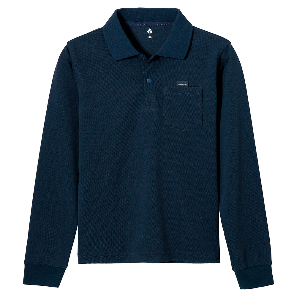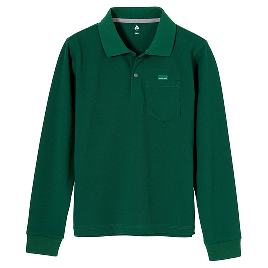 高機能素材ウイックロン®を鹿の子に編み込んだ生地を使用した長袖のポロシャツです。ハリ・コシがあり肌離れがよく、快適な着心地です。襟元はホックボタンで子どもでも留めやすく、胸ポケットの上部には名札の安全ピンを通せるロゴテープを配しています。アウトドアから普段使いまで幅広く活躍します。