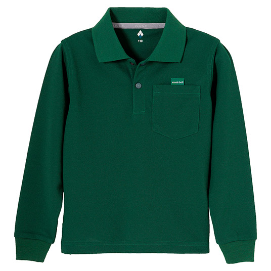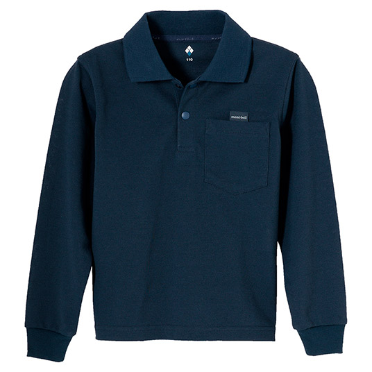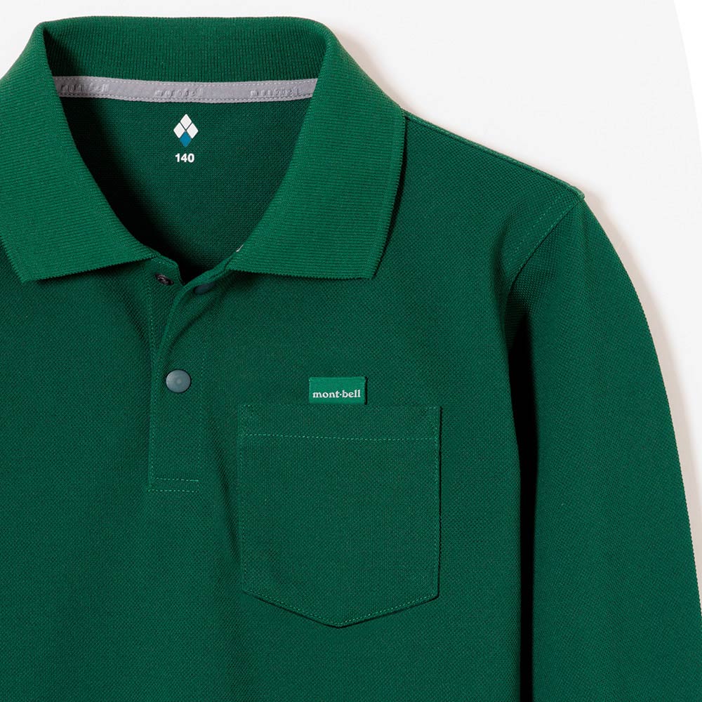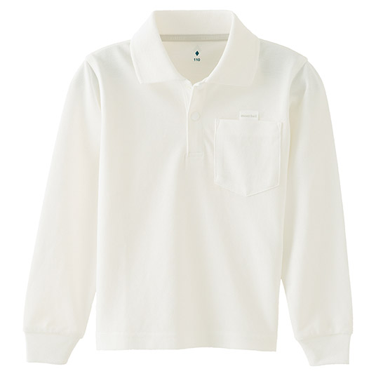 高機能素材ウイックロン®を鹿の子に編み込んだ生地を使用した長袖のポロシャツです。ハリ・コシがあり肌離れがよく、快適な着心地です。襟元はホックボタンで子どもでも留めやすく、胸ポケットの上部には名札の安全ピンを通せるロゴテープを配しています。アウトドアから普段使いまで幅広く活躍します。