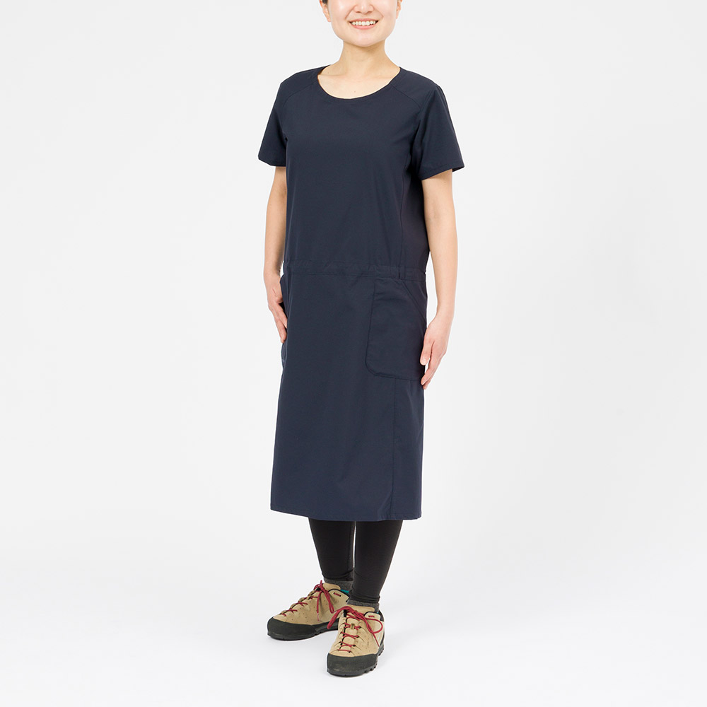 キャンプやアクティビティ後のリラックスタイムに適した軽量で動きやすいワンピースです。通気性とはっ水性を備えた素材を使用し、蒸れにくく快適な着心地です。ウエストのゴムを絞ることで、足上げしやすい着丈に調節することができ、トレッキングなどのアクティビティでも活躍します。