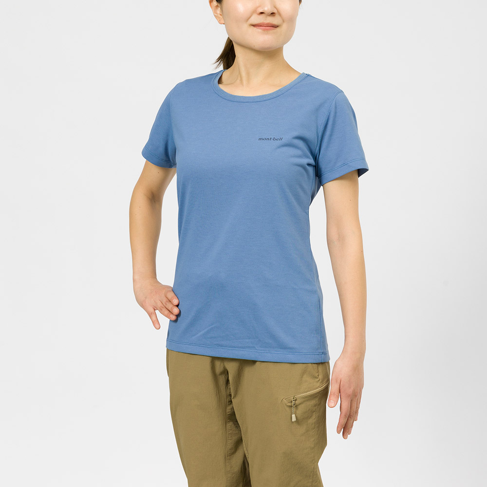 コットンのような自然な風合いと優しい肌触りで、優れた速乾性と通気性を兼ね備えた快適素材ウイックロン®を使用。タイトなシルエットのTシャツです。運動量の多いアクティビティでも軽快に着用していだだけます。