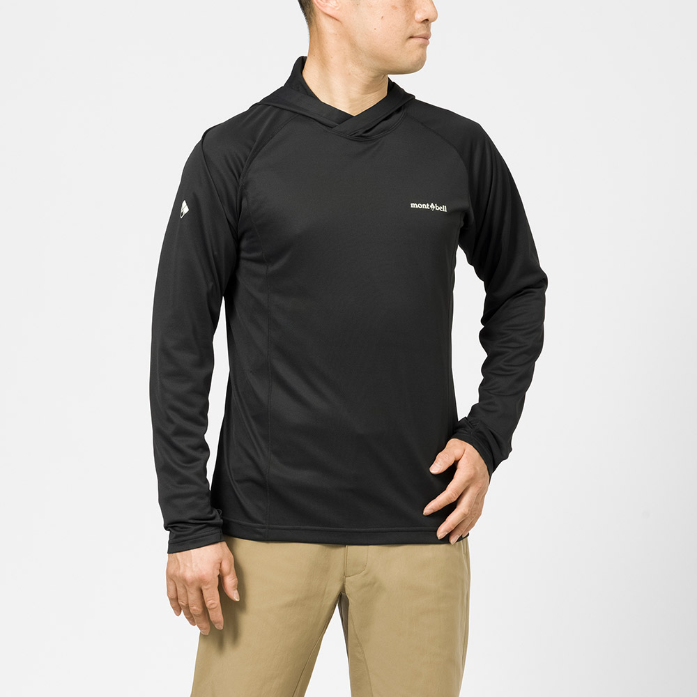 高い吸水拡散性とUVカット効果を両立した、日除けに適したフード付きシャツです。登山やキャンプ、釣りなどさまざまなアクティビティで日焼け対策として活躍します。フードと手の甲までカバーする袖により、効果的に日差しを遮ります。