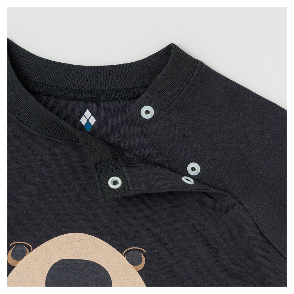 大変動きやすく、洗ってもすぐ乾くので、野外での遊び着や部屋着にも適した長袖のロンパースです。高い吸水拡散性で汗を吸い上げ、肌をサラサラとした状態に保ちます。肌触りが優しく、消臭機能も備えています。首元や内股はホックで大きく開くので、着替えやおむつ替えも簡単です。