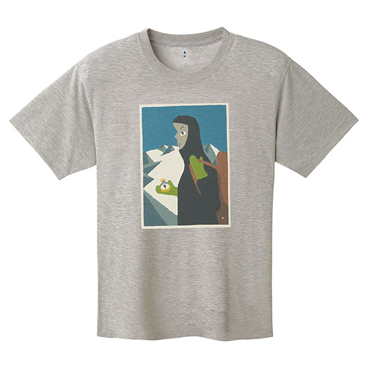コットンのような自然な風合いと、優しい肌触りを持ちながらも、優れた速乾性と通気性を兼ね備えた快適素材です。トレッキングだけでなく、日常でも快適な着用感です。「山の版画家」畦地梅太郎さん(1999年没)による作品をプリントしています。