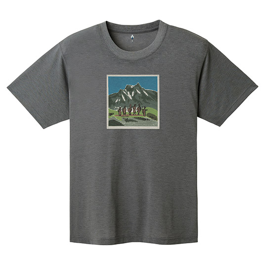 コットンのような自然な風合いと、優しい肌触りを持ちながらも、優れた速乾性と通気性を兼ね備えた快適素材です。トレッキングだけでなく、日常でも快適な着用感です。「山の版画家」畦地梅太郎さん(1999年没)による作品をプリントしています。
