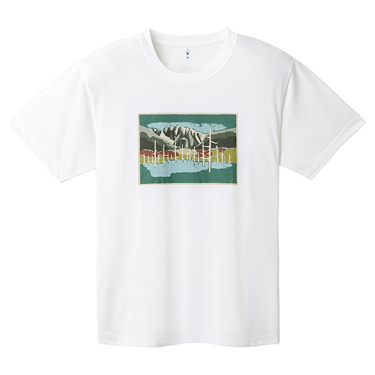 コットンのような自然な風合いと、優しい肌触りを持ちながらも、優れた速乾性と通気性を兼ね備えた快適素材です。トレッキングだけでなく、日常でも快適な着用感です。「山の版画家」畦地梅太郎さん(1999年没)による作品をプリントしています。