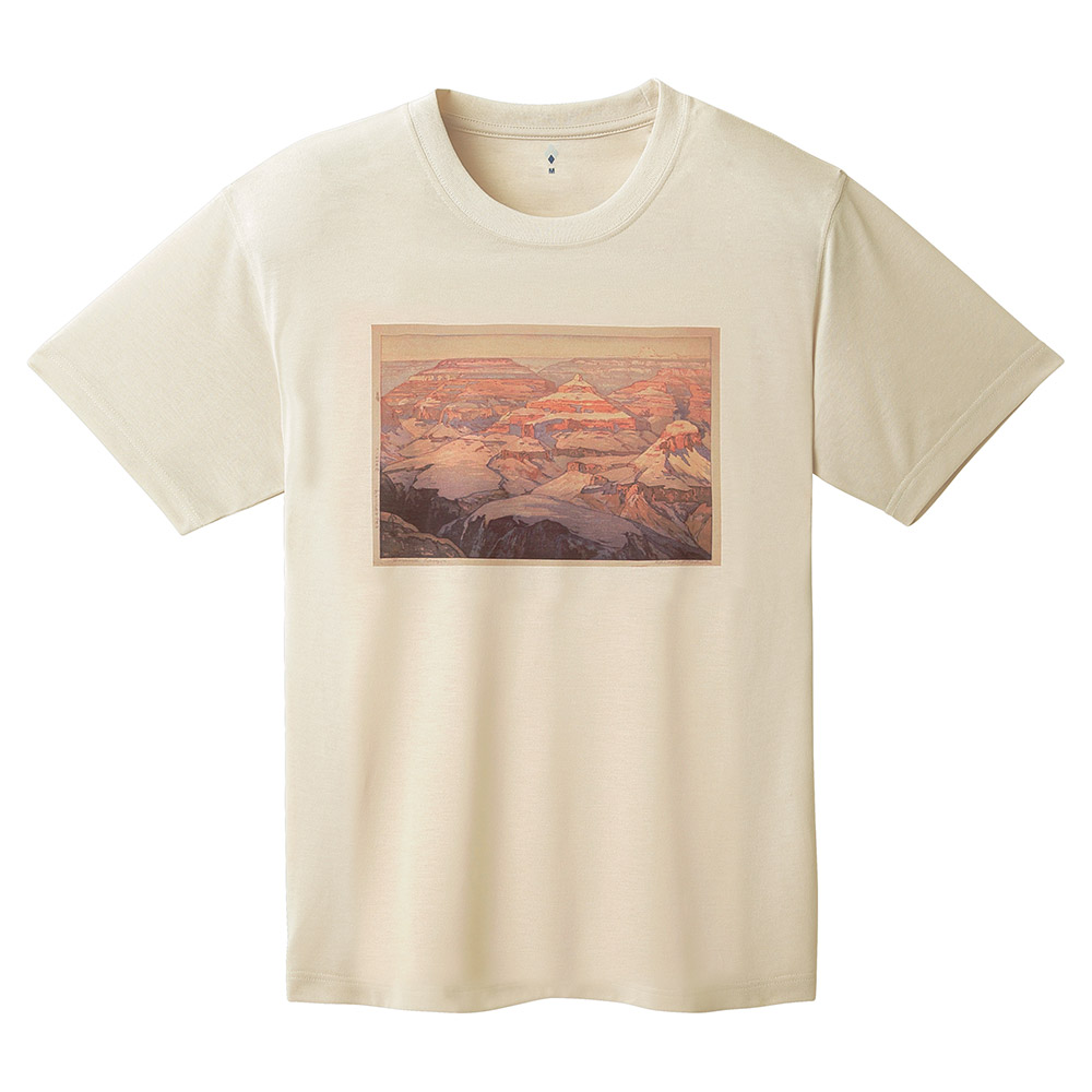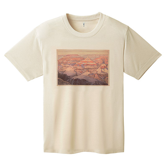 コットンのような自然な風合いと、優しい肌触りを持ちながらも、優れた速乾性と通気性を兼ね備えた快適素材です。トレッキングだけでなく、日常でも快適な着用感です。1900年パリ万博で受賞するなど、世界的に名高い山岳画家の吉田博さんによる作品をプリントしています。