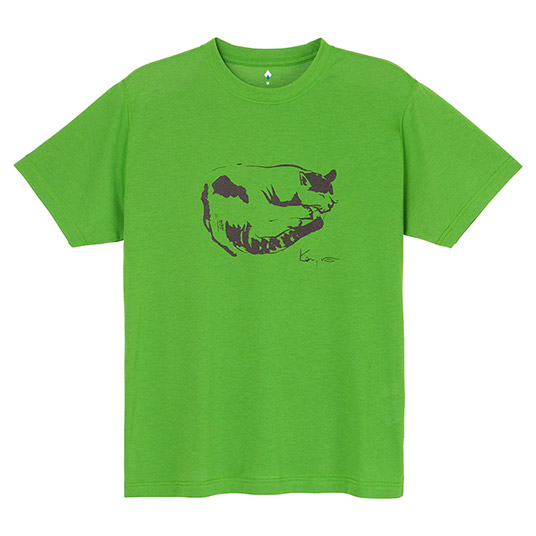 コットンのような自然な風合いと、優しい肌触りを持ちながらも、優れた速乾性と通気性を兼ね備えた快適素材です。トレッキングだけでなく、日常でも快適な着用感です。テレビ・舞台・映画と幅広い分野で活躍され、登山やフリークライミングを趣味としている石丸謙二郎さんによるイラストをプリントしています。