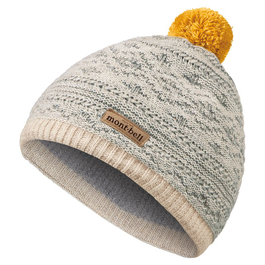 天頂部にポンポンをあしらった、かわいらしいキャップです。暖かなウールを混紡したニット地ですが、手洗いによる洗濯が可能です。