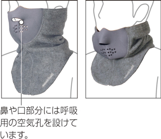 冬季登山やスキーなどのウインタースポーツに最適な高機能ネックゲーターです。メイン生地に抜群のストレッチ性を備える中厚手の素材を使用。吸汗性にも優れ、快適な着用感を実現しています。口や鼻を覆う部分には裏側にパイル地を付けたクリマプレン®を使用し、風をシャットアウトするだけでなく、生地自体が保水しにくいので凍結しにくくなっています。ヘルメットや帽子との併用も可能で、口を出した状態でも着用できます。