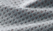 極細ファイバーで作ったトリコット起毛地を使用した、軽やかなメッシュ素材です。繊維間に多くの空気を蓄えるため、薄手ながらも高い保温性を実現。吸水速乾性にも優れます。また、制電効果も備え、空気が乾燥する季節でも静電気が起きにくく快適です。