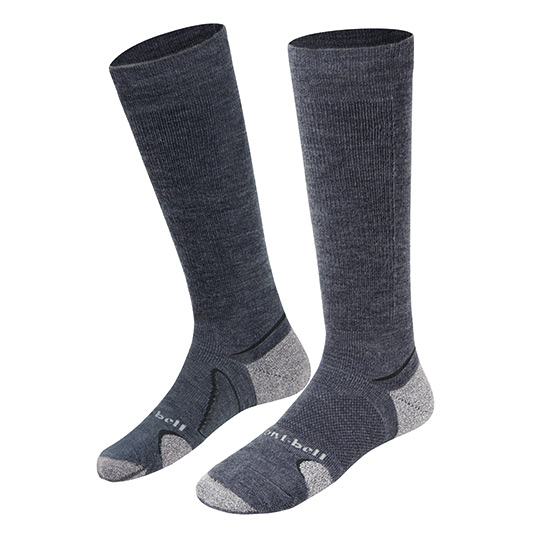 スキーなどの前傾姿勢時に快適にフィットするパターンを採用したソックスです。スキーブーツを履いた際に、特に負荷がかかるすね部分に、クッション性を持たせています。上質なメリノウールを使用し、優れた保温性を備えています。