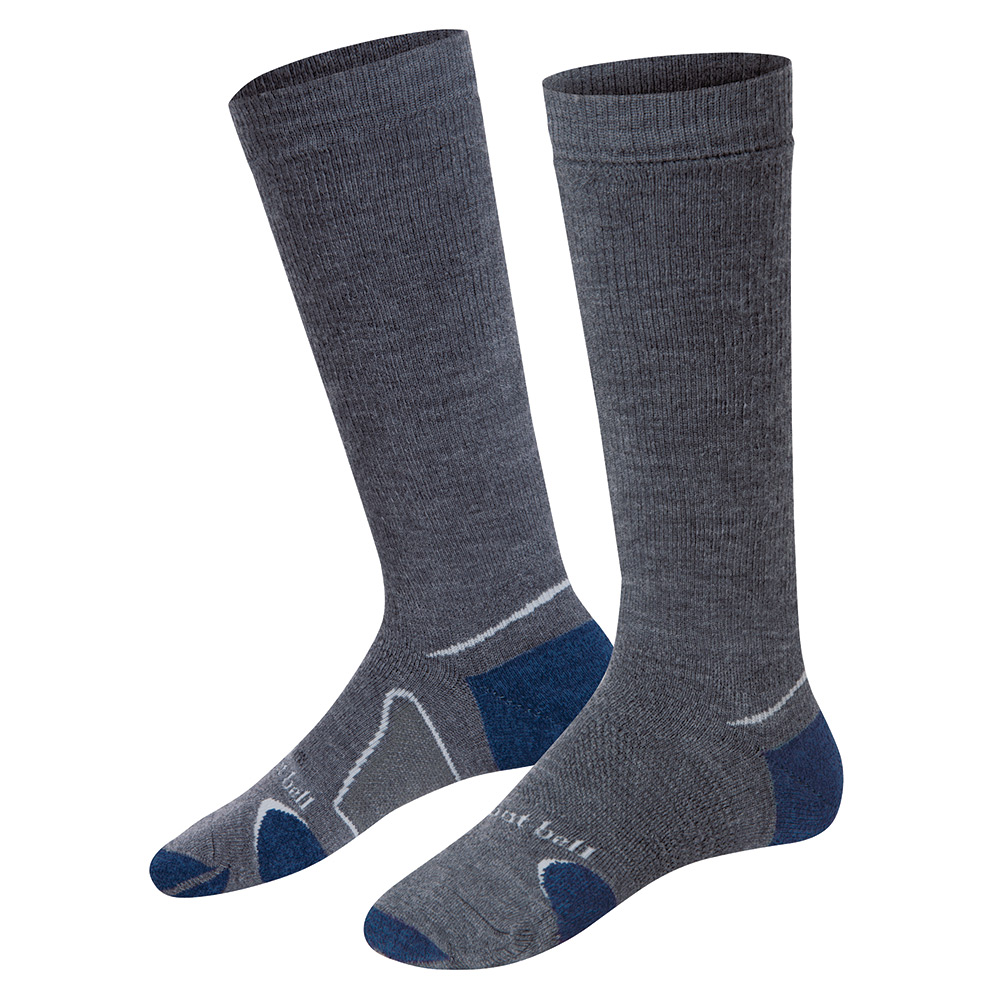 スキーなどの前傾姿勢時に快適にフィットするパターンを採用したソックスです。全面にパイルを施し、保温性とクッション性に優れ、寒さが厳しい環境での使用に最適です。上質なメリノウールを使用し、優れた保温性を備えています。