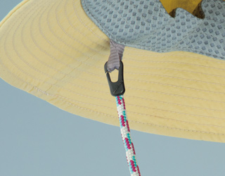 大きな負荷がかかったときにはフックが外れる安全設計の帽子用あごひもです。金属パーツではなく、肌当たりがやさしいソフトな素材を使用しています。「ハットコネクト」「ループ付き」の表示がある帽子に対応します。