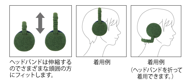 暖かく肌触りがやさしいフリース素材を使用した、折り畳み式の耳当てです。伸縮するヘッドバンドを備え、さまざまな頭囲の方にフィットします。使用しない時はコンパクトに折りたたむことができ、携行に便利です。※洗濯不可