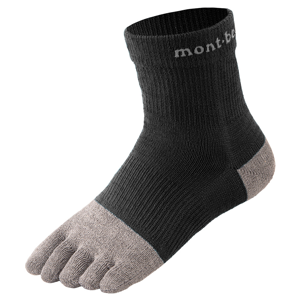 運動量が多く、激しい発汗を伴うランニング用に開発された5トゥソックスです。本体には通気性、吸放湿性に優れた紙糸プラス®を使用。汗をかいたときの肌離れがよく、足を常にドライな状態に保ちます。砂利や泥の侵入を防ぐため、丈はくるぶし上に設定しています。つま先とかかとの外側には、靴内での滑りを抑えるポリエステルナノファイバーを使用し、抜群の足裏感覚を実現しています。