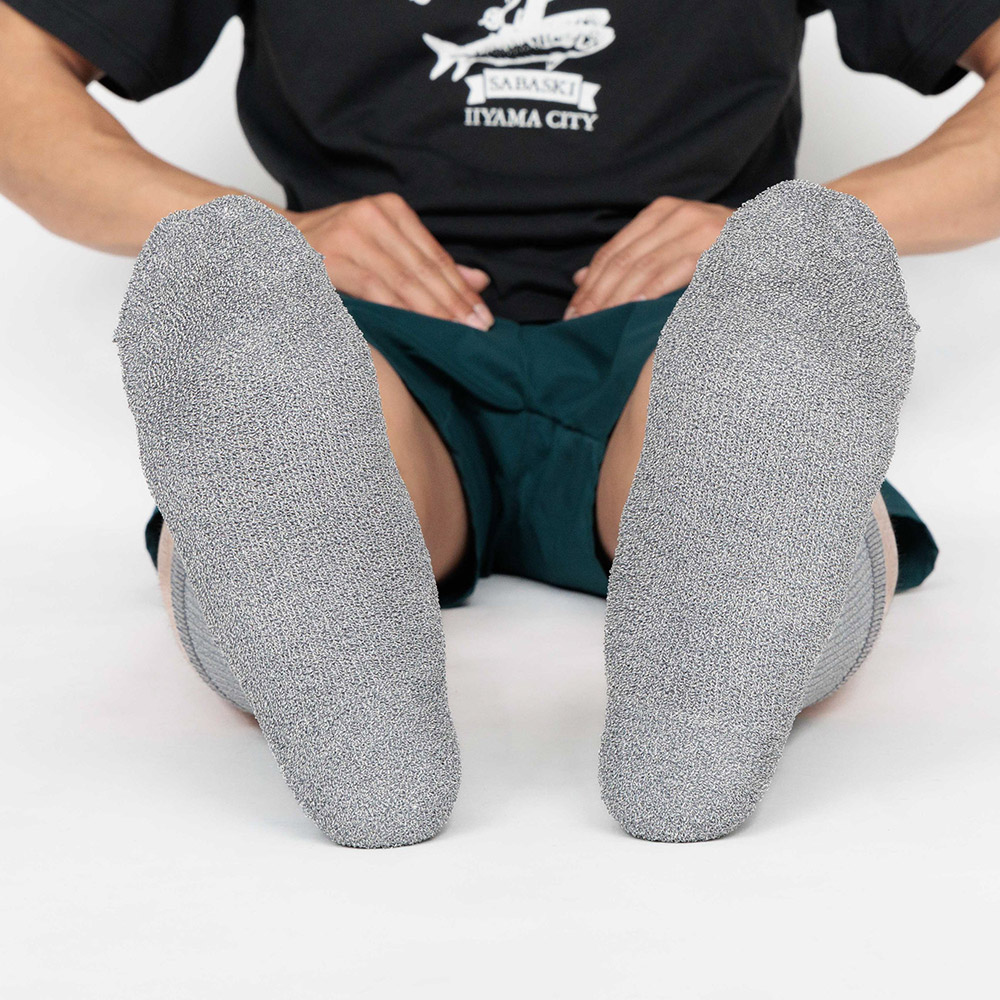 紙糸プラス™は通気性と吸放湿性を備え、蒸れにくく、汗をかいてもさらっとした爽やかな履き心地です。洗濯しても衰えない消臭効果を備えています。