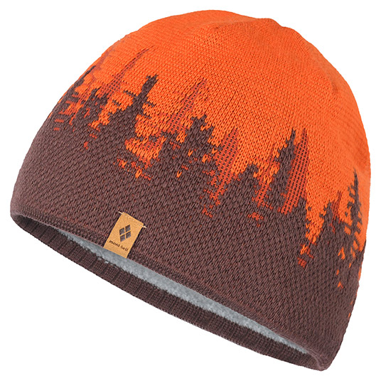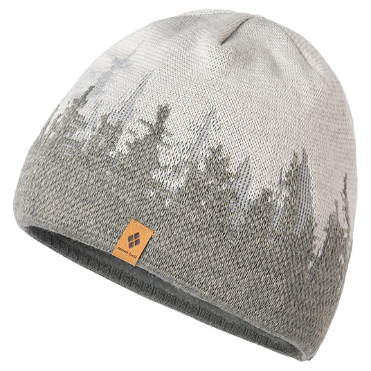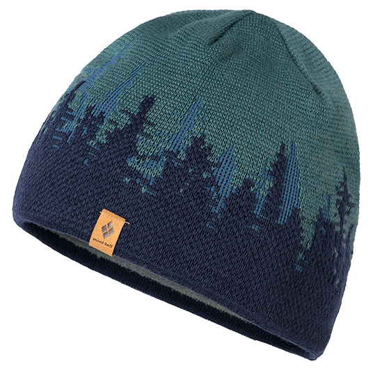 保温性に優れたウールの混紡糸を使用したキャップです。表地と裏地の継ぎ目に縫製がなく、素材のストレッチ性を最大限に生かしています。森のイラストを入れています。