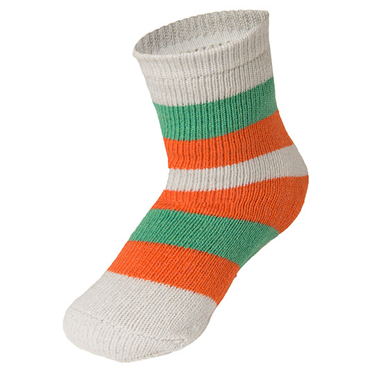 暖かく、心地よい肌触りのメリノウールを使用した薄手のソックスです。保温性と消臭効果に優れ、発汗量に応じて湿度が調節されるので、常に靴の中を快適な状態に保ちます。かかとを固定しない筒状のデザインで、成長に合わせて16cmまでの足サイズに対応します。足裏に滑り止めのゴム付き。旅行や普段履きに適しています。