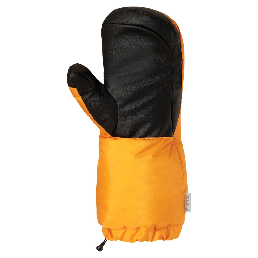 表地に防風性と透湿性に優れた「ウィンドストッパー®ファブリクス」を使用し、800フィルパワーのダウンを封入。極地での使用にも耐えうる高い保温性を備えたミトンです。手のひら部分にはシンサレート™を封入し、操作しやすく設計。内側の人差指と中指の股には仕切りがあり、指先が手の曲げにしっかりと追随します。