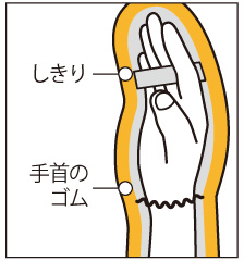 グローブを装着したまま、片手で袖口の絞り具合を調節できる機能です。