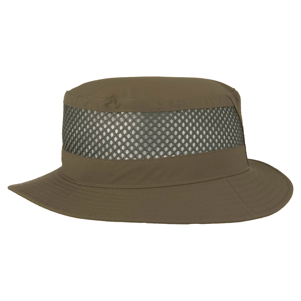 優れた通気性を備えたメッシュ生地を帽体の一部に使用し、涼しく快適なかぶり心地のハットです。天頂部とひさしにはコットンのような風合いを持つナイロン素材を使用しています。