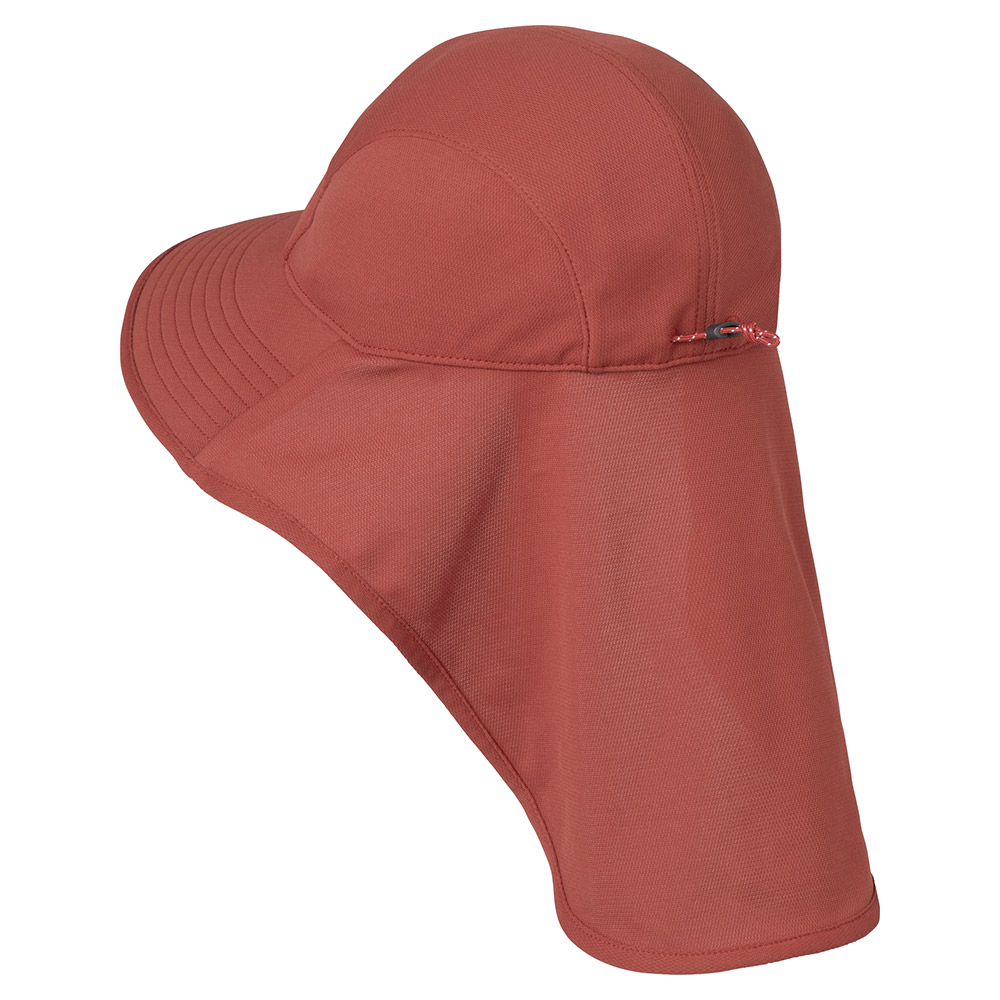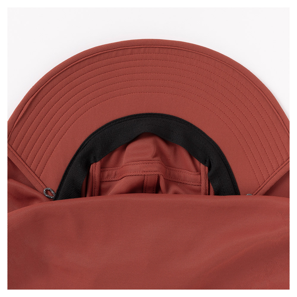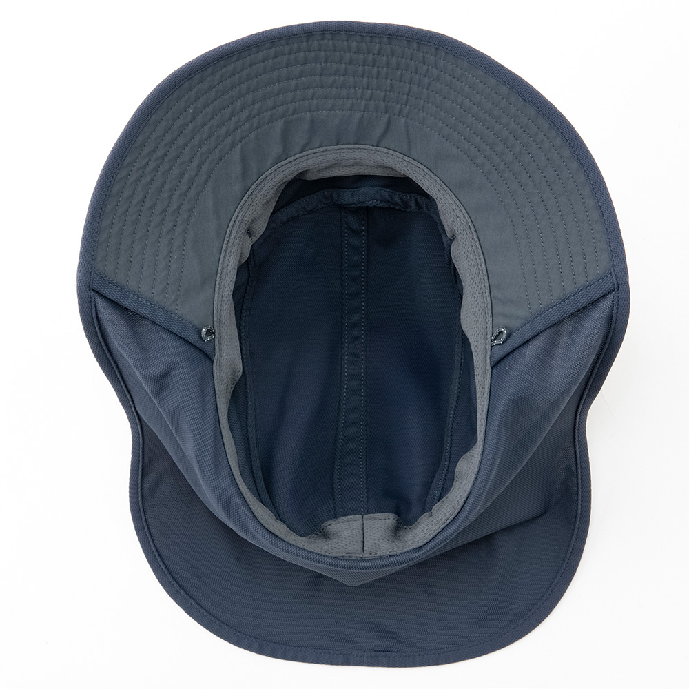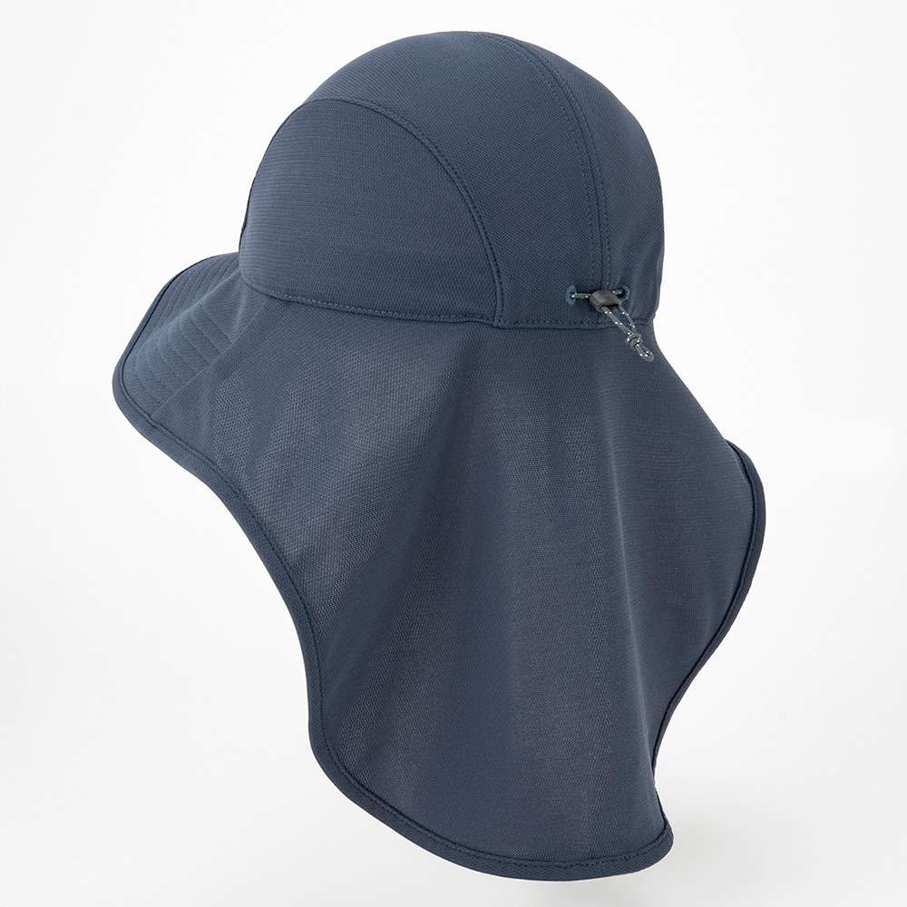 吸水拡散性があり乾きやすく、通気性に優れながら高い紫外線カット効果を備えたハットです。日差しから首元を守るシェード付き。