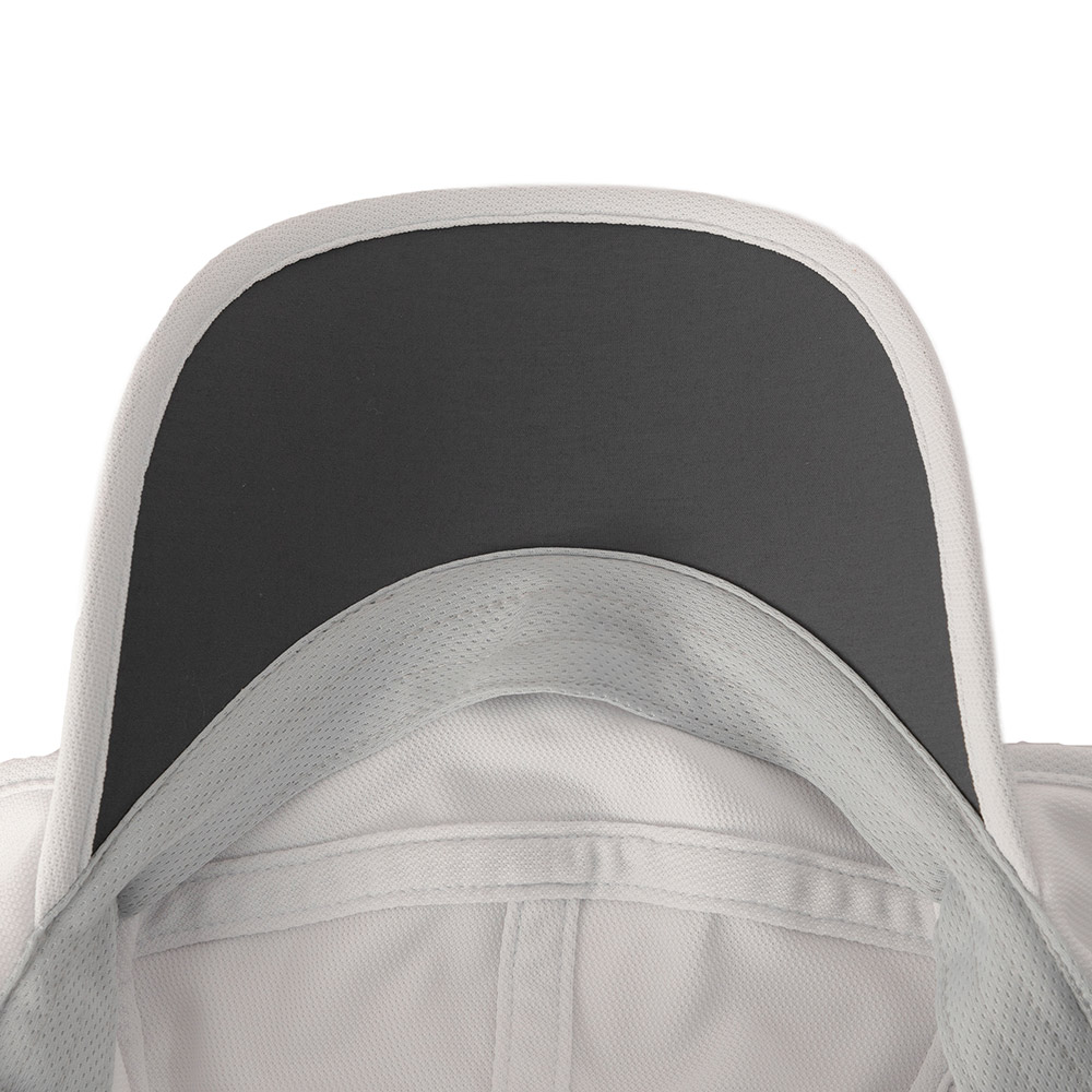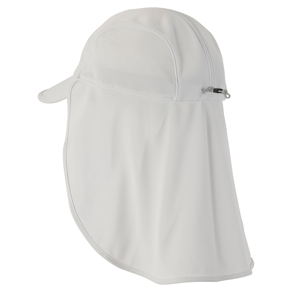 吸水拡散性があり乾きやすく、通気性に優れながら高い紫外線カット効果を備えたキャップです。日差しから首元を守るシェード付き。
