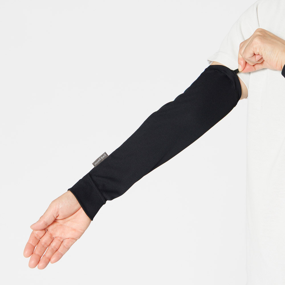 腕の保護や日焼け対策に最適なアームカバーです。通気性と吸水拡散性を備えた素材を使用し、たいへん涼しく快適な着用感です。消臭機能も備えます。上部のゴムでフィット感の調節が行えます。