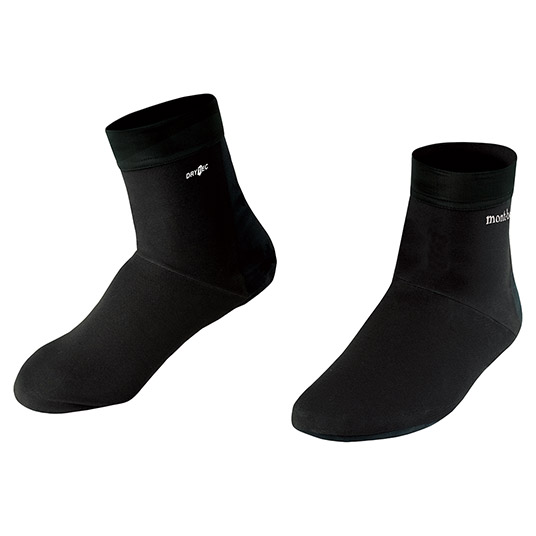 モンベル独自の防水透湿性素材ドライテック®を使用した、靴下の上に履くオーバーソックスです。甲から足首にかけての前面にはストレッチ性のある素材、足裏は耐久性に優れる素材を使用しています。すべての縫い目にシームテープ処理を施しています。さまざまな場面で手軽に足元の防水性を確保できます。アイロンで接着できる修理用パッチ付き。