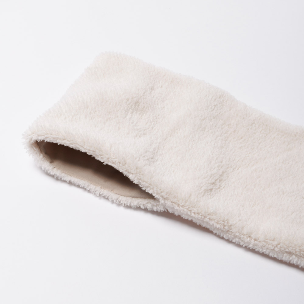 大変暖かく、肌触りが優しいクリマエア®を使用したマフラーです。片方の端をもう一方に開いたスリットに通して留めることができます。