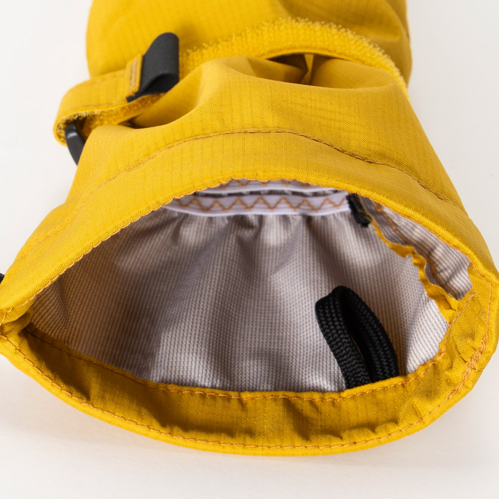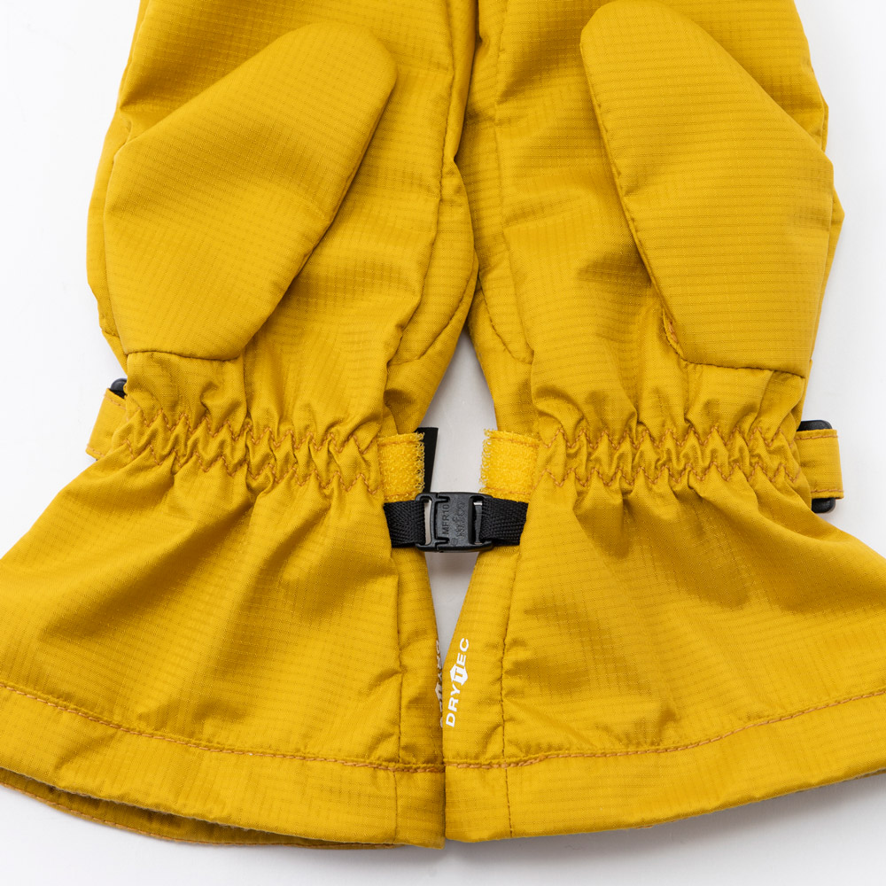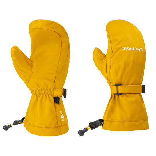 ニットグローブやフリースグローブなどの上に重ねて着用する、ミトンタイプのオーバーグローブです。防水性・透湿性に優れた素材を使用し、雪遊びやハイキング時の使用に適しています。手首をしっかりとホールドできるアジャスタブルベルト付きです。