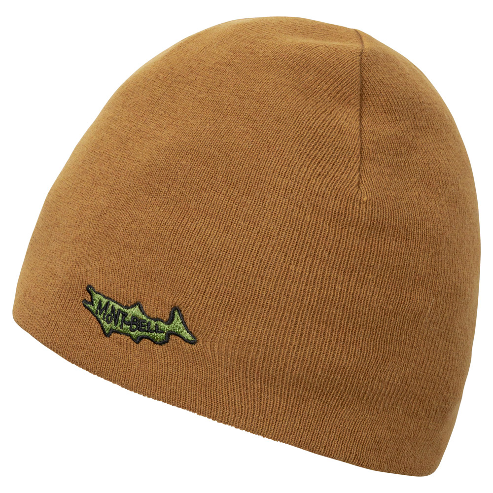 プレーンなニットで編み上げたワッチキャップです。肌触りが良く、快適な被り心地です。魚をモチーフにしたワンポイントの刺しゅう入り。