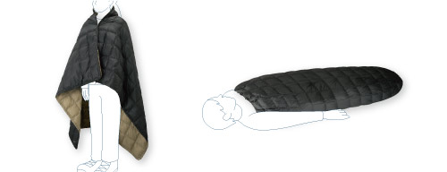 しなやかな生地に良質なダウンを封入した軽量ブランケットです。スナップボタンとドローコードを使用して、羽織ったり、スカートのように腰に巻いて使用可能。複数のダウンブランケットを連結することもできます。簡易スリーピングバッグとしても使用できます。生地には多少の雨や汚れをはじくはっ水加工と、不快な静電気を軽減する帯電防止加工を施しています。表と裏で色が異なるリバーシブル仕様です。