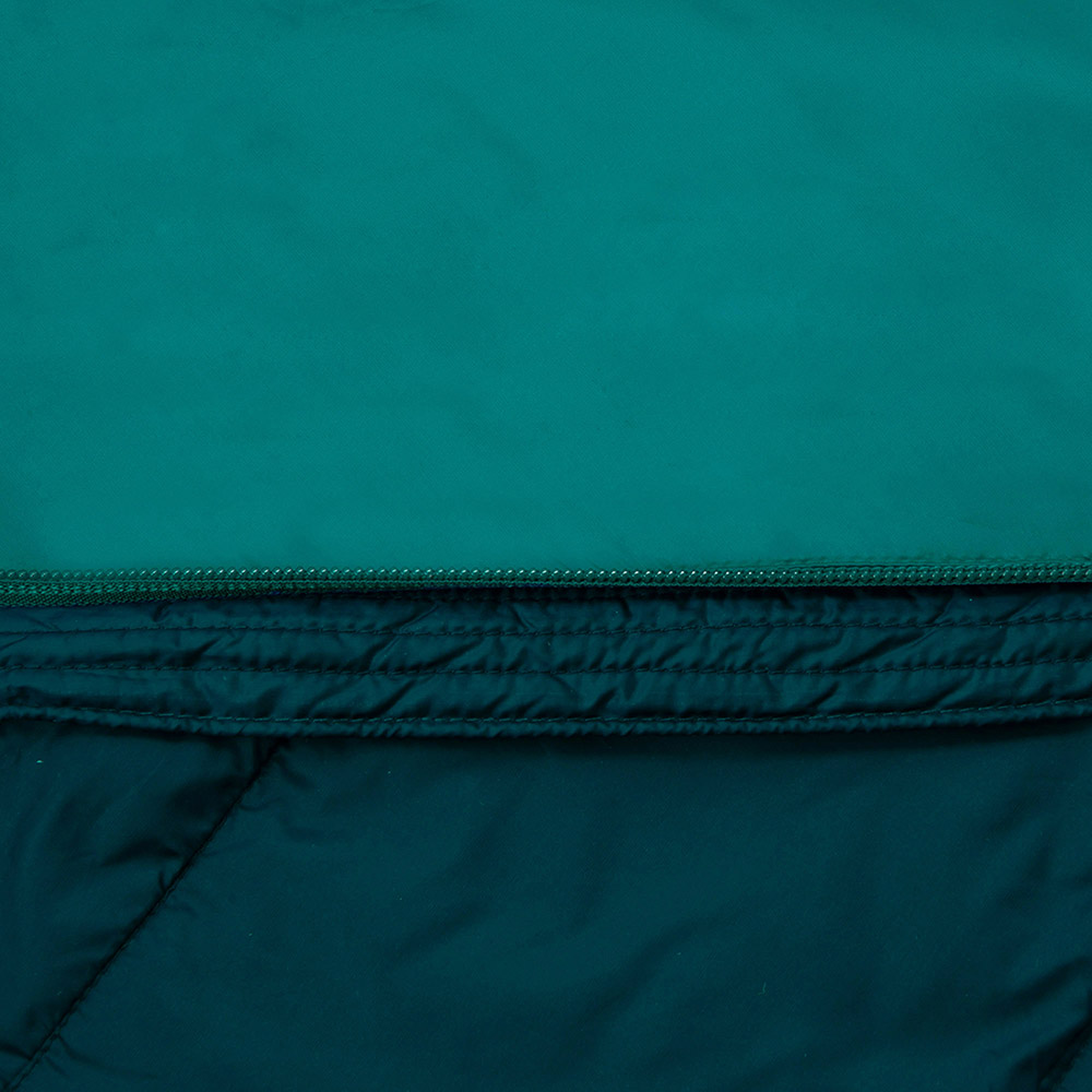 縫い目を極限まで減らすことで、中綿本来のかさ高さを損なわず、暖かい空気を蓄えることに成功。一般的に中綿は、さまざまな角度から負荷がかかって中綿が破れる「綿切れ」を防止するため、キルティング加工(縫い止め)されています。モンベル独自の中綿素材「エクセロフト」は、繊維を互いに固着することで優れた耐久性を備えることから、キルティング加工をすることなく最小限の縫製が可能になりました。縫い目からの放熱やコールドスポットの発生を防ぎ、シンプルな構造で中綿の最大限の保温性能を実現しています。