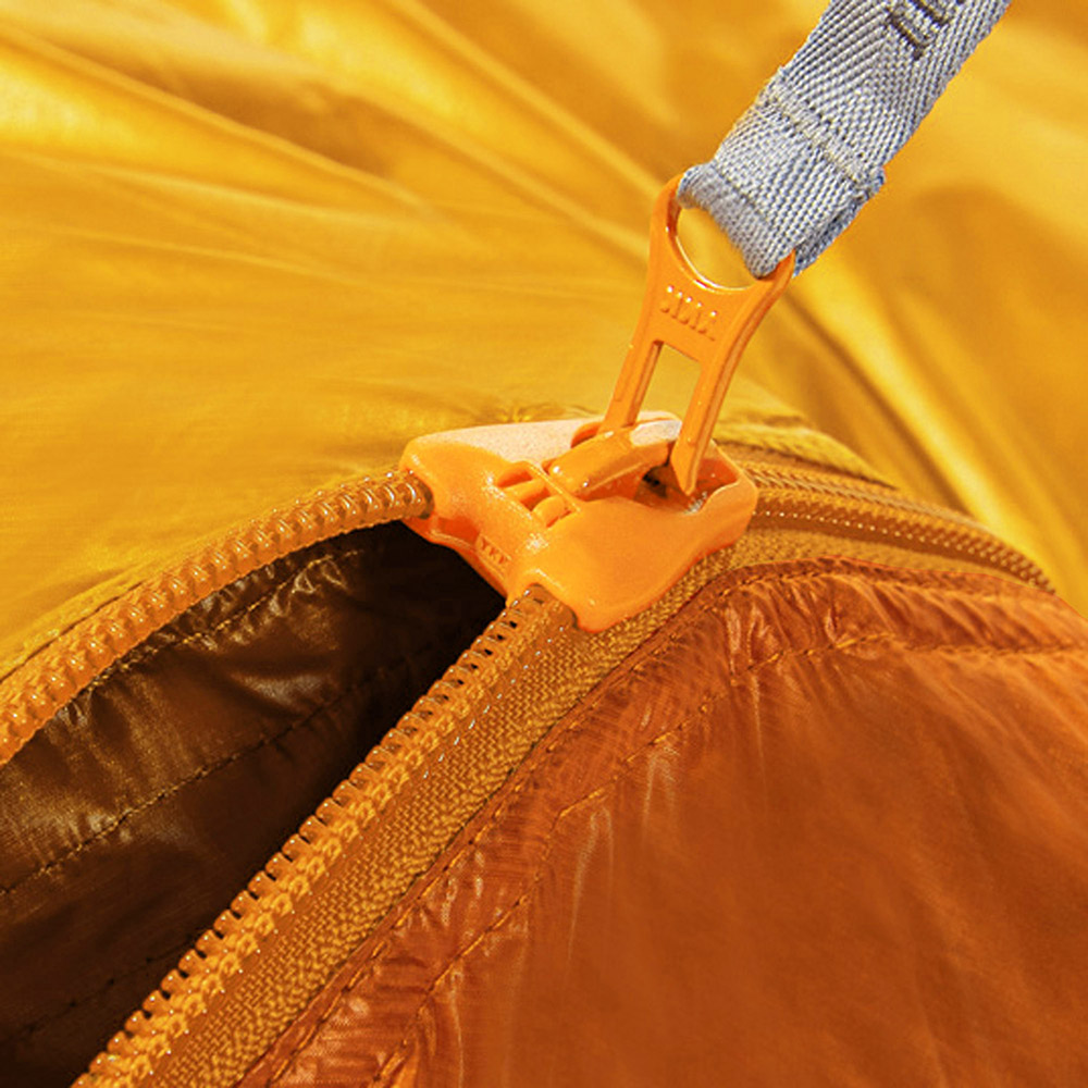 右にジッパーが付くRジッパーモデルと左側に付くLジッパーモデルがあり、RジッパーとLジッパーをつなげば、スリーピングバッグ同士をジョイントできます。